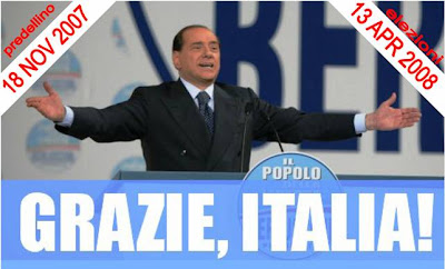 Cari amici,domani ricorre il primo anniversario di una data, secondo me e del mio gruppo di amici, STORICA!Ricordate il nostro grande Silvio Berlusaconi un anno fa dove si trovava?Se non lo ricordate ve lo dico io...Sul predellino a Milano in Piazza San Babila ad annunciare al mondo la sua nuova e, come al solito geniale, intuizione.La formazione di un nuovo concetto di politica e di partito, basato e fondato sugli elettori. Ricordarte da quante centinaia di migliaia di milanesi era osannato quella sera? Sembrava che Berlusconi avesse parlato in breda a qualche delirio momentaneo. Invece, NO! Sapeva benissimo cosa stava facendo e cosa stava annunciando: la nascita del POPOLO DELLA LIBERTA'.